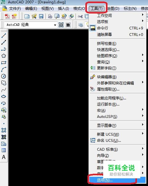 点击菜单栏“工具”,下拉菜单中选择“选项”。