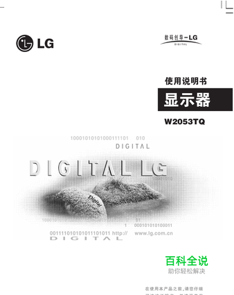 使用说明书是向人们介绍具体的关于某产品的使用方法和步骤的说明书。现在介绍的是LG W2053TQ液晶显示器使用说明书。