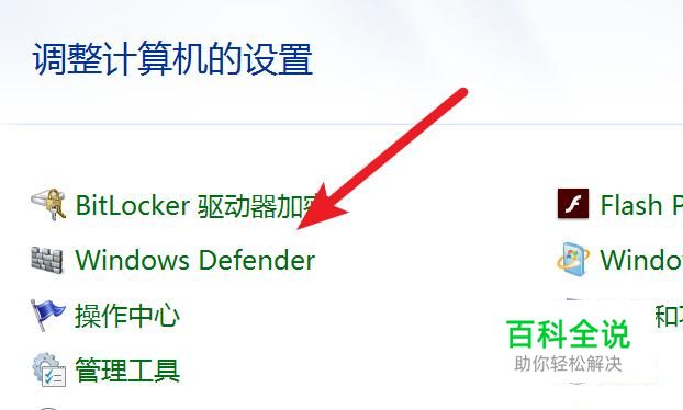 打开控制面板后,找到并打开Windows Defender