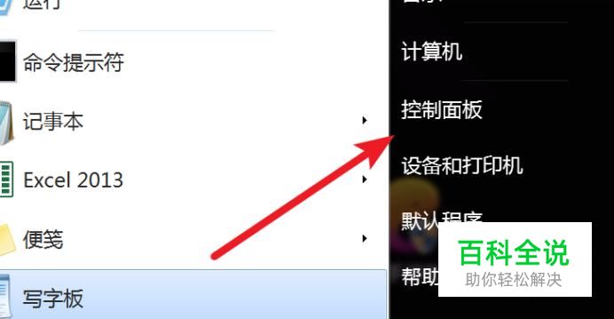 点击打开开始菜单上的‘控制面板’