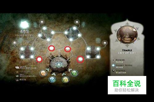 总地图篇 本次的整个游戏区域是由一个巨大的地图组成的,除了使用传送的时候基本都不用二次读取。 整个地图由4个大区域和中间的神庙本身构成,每个区域又分别由6个小区域组成,包括一个入门区域,4个主要区域,以及一个BOSS专属区域。 在攻略之前,每一个区域都是处于被污染状态,而当这个区域被净化之后即可直接传送到该区域的净化点并可以收集这个区域中的light seed。 本作中总共有1001颗light seed,light seed的作用是解锁新能力以前进至下一个区域,但并不是每一颗light seed都是需要的,单纯打完流程只需要540颗。