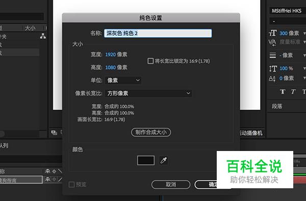文本信息添加完成之后,按CTRL+Y来快速创建纯色固态层,宽高保持与合成一致。