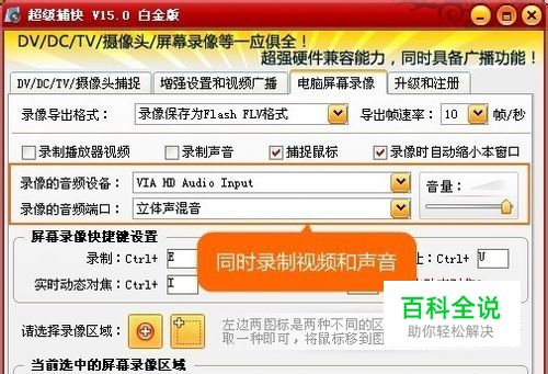 快速选择录像的区域,我们还可以边录制视频,边录制声音 接着,我们使用软件自带的橙色录像区域选择工具,即可设置录像的范围。当然了,超级捕快还可以边录视频,边录声音。建议更新下声卡的驱动,还可以发挥声卡的更大效能。