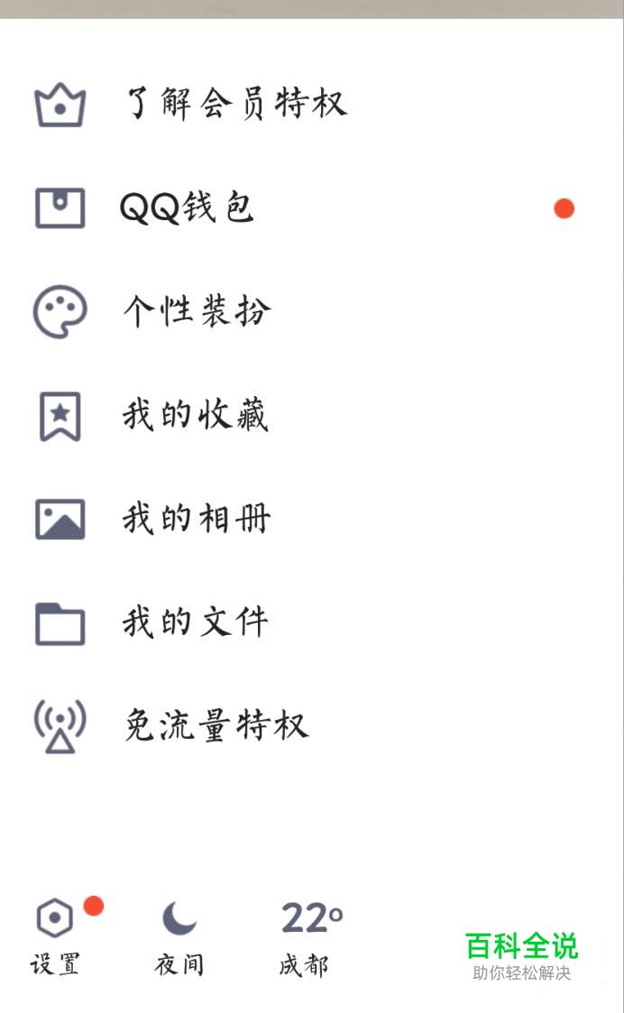 首先登录手机QQ,在QQ界面向右滑动,点击左下角的“设置”。