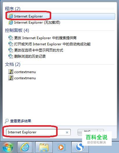 第二种方法,首先,如图所示,点击打开“开始菜单”。在搜索栏中输入“Internet Explorer”,并点击搜索图标,就会返回如下结果。