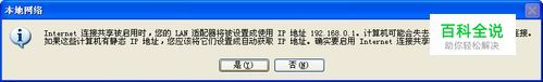 这时会弹出如下图的提示,点击确定即可。这时无线网卡的IP地址会被自动设置成192.168.0.1。