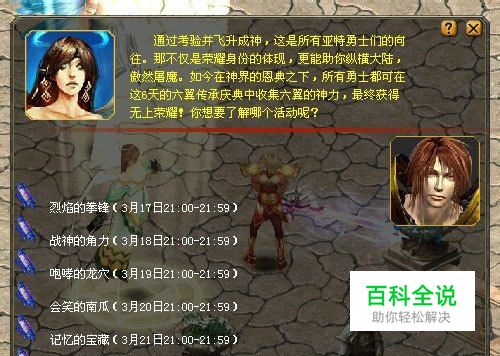 3月17日-3月22日的21:00-22:00通过六翼圣使圣米凯尔或圣迦列尔进入六翼圣坛参加当天活动,可获得神耀点数。