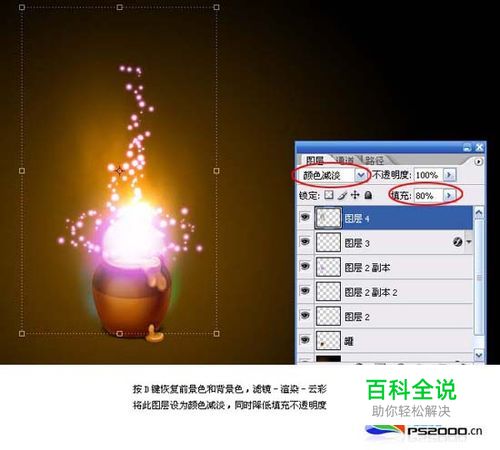 15、底部发光图层似乎太亮了,将图层4的填充改为:40%。完成最终效果。
