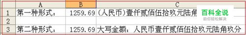第一种方法:通过函数嵌套实现 数字转人民币大写形式的公式是: =IF(B1<0,"金额为负无效", (IF(OR(B1=0,B1=""),"(人民币)零元", IF(B1<1,"(人民币)", TEXT(INT(B1),"[dbnum2](人民币)G/通用格式")&"元"))))& IF( (INT(B1*10)-INT(B1)*10)=0, IF(INT(B1*100)-INT(B1*10)*10=0,"","零"), (TEXT(INT(B1*10)-INT(B1)*10,"[dbnum2]")&"角")) &IF( (INT(B1*100)-INT(B1*10)*10)=0, "整", TEXT((INT(B1*100)-INT(B1*10)*10),"[dbnum2]")&"分") 数字转人民币大写形式的公式是: ="大写金额:"&IF(TRIM(B1)="","",IF(B1=0,"","人民币"&IF(B1<0,"负",)&IF(INT(B1),TEXT(INT(ABS(B1)),"[dbnum2]")&"元",)&IF(INT(ABS(B1)*10)-INT(ABS(B1))*10,TEXT(INT(ABS(B1)*10)-INT(ABS(B1))*10,"[dbnum2]")&"角",IF(INT(ABS(B1))=ABS(B1),,IF(ABS(B1)<0.1,,"零")))&IF(ROUND(ABS(B1)*100-INT(ABS(B1)*10)*10,),TEXT(ROUND(ABS(B1)*100-INT(ABS(B1)*10)*10,),"[dbnum2]")&"分","整")))