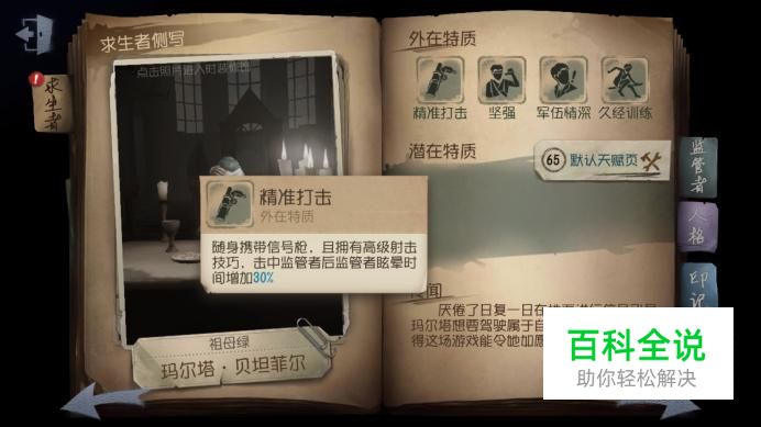 在救队友的时候,精准打击配合枪能提供一个好的救人时机,并且能够拖延时间,使队友和自己都有很大的可能逃脱监管者!