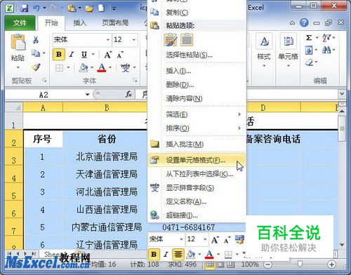 第1步,打开Excel2010工作簿窗口,选中需要设置边框的单元格区域。右键单击被选中的单元格区域,并在打开的快捷菜单中选择“设置单元格格式”命令,如图2010081106所示。 图2010081106 选择“设置单元格格式”命令
