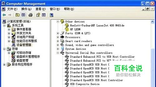 删除设备后选扫描检测硬件改动 这时设备管理器会出现4个设备,其中有USB Pringt Support