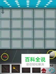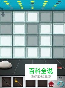 第六十三关,电梯门前有一块石头和两个按钮,首先将石头移动到左侧压住红色开关。
