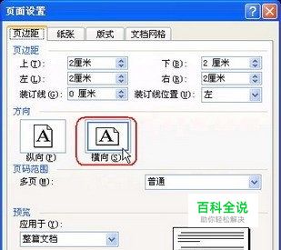 第2步,打开“页面设置”对话框,在“页边距”选项卡中调整“页边距”区域的微调框,将上、下、左、右边距全部调整为2厘米。然后单击选中“方向”区域的“横向”选项。由于A4纸是新建Word文档时的默认纸型,因此无需再切换至“纸张”选项卡去修改纸张类型。单击“确定”按钮使设置生效,如图2008070920所示。 图2008070920 设置纸张边距和方向