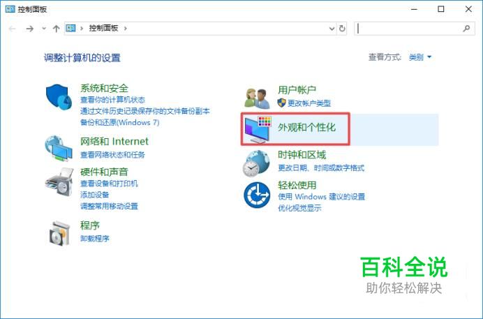 弹出的界面,我们点击外观和个性化;