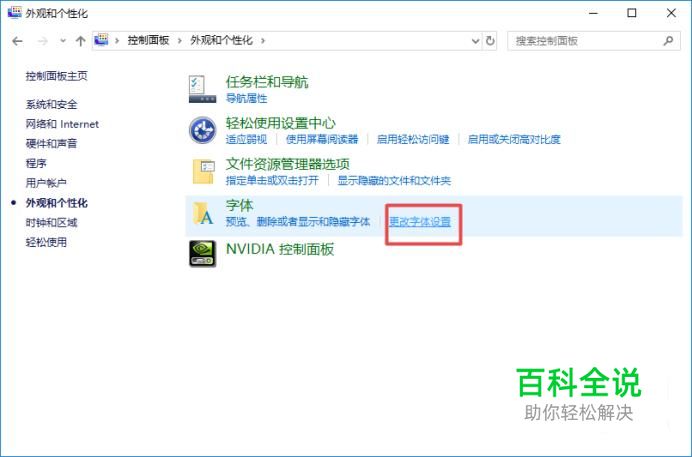 弹出的界面,我们便看到更改字体设置了,我们点击它;