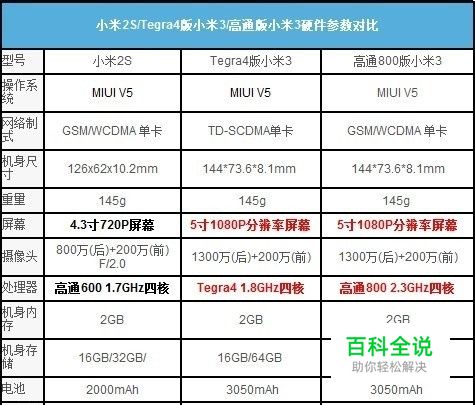 首先我们来看看小米3与小米2S配置参数对比