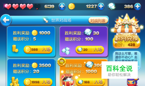 赚取积分的第一种方法:通过世界对战获取,该方法会消耗金币或钻石。