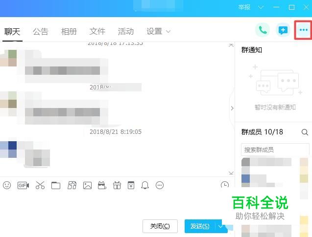 进入群之后我们点击右上角的那个按钮,如图所示;