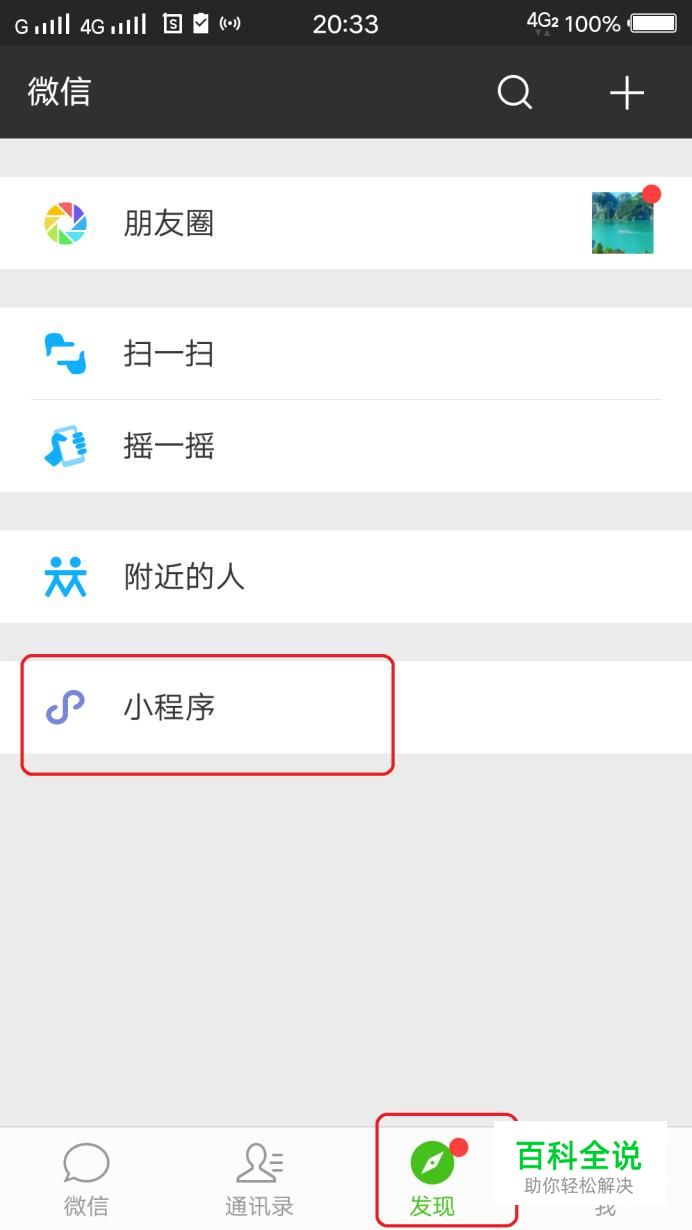 首先,我们打开微信,点击“发现”,“小程序”。