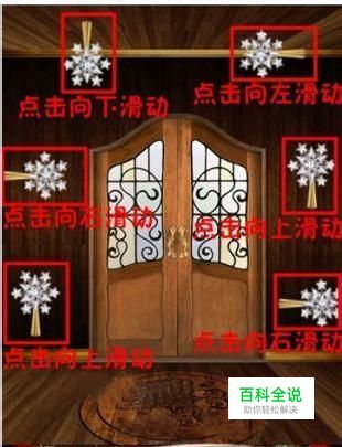 如图所示。嘿嘿~在100份圣诞礼物第12关游戏中的雪人正不断地蹦来蹦去,此刻!我们只需不停地点击雪人,它会逐渐缩小朝房门的方向前去。