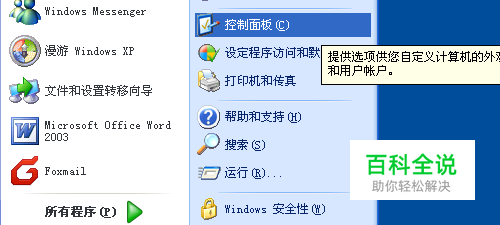 首先是XP系统的卸载方法:点击开始——然后选择控制面板。