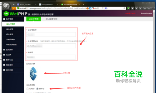 在公众管理处填写相应的信息,可参考下图所示填写