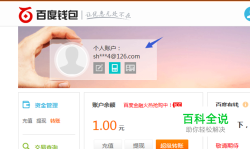 一分钱专享在哪呢?在百度钱包界面的右上角,你可以看到,这里就是唯一的入口,点击就可以进入。