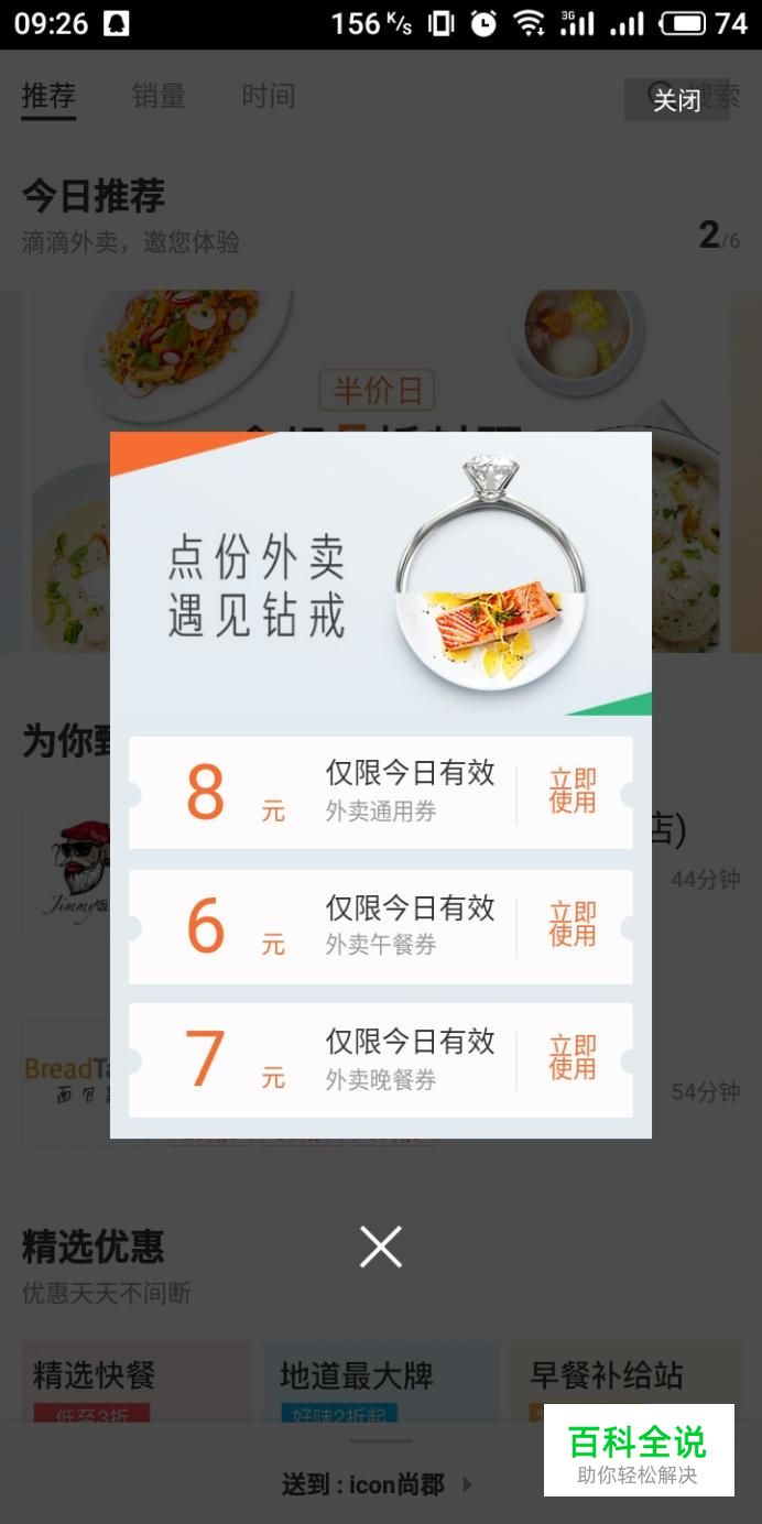 进入滴滴外卖界面,每日都会有优惠券,不要错过哦,领取之后点击相应的店铺进入。