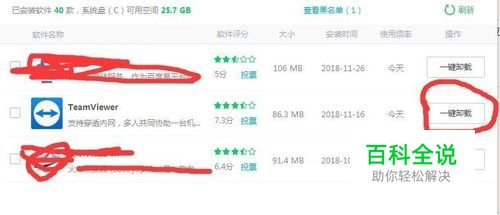 如果出现上一步的情况,那就直接卸载目标电脑上的TeamViewer,我这里直接用的是软甲管家卸载的,一键卸载,比较方便。