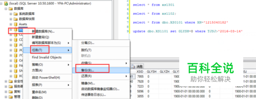 选择要备份的数据库在菜单中选择任务,然后选备份。