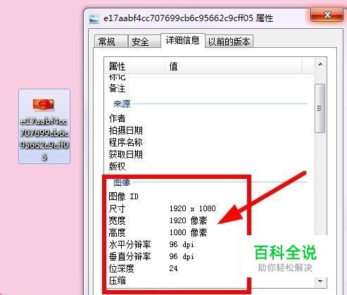 首先我们准备好一个图片。鼠标右击图片—属性—详细信息中查看图片的像素。从图中可以看出我的图片尺寸是1920×1080。