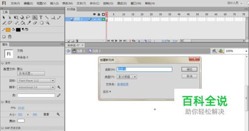 点击【插入】-【建新元件】-选择【影片剪辑】