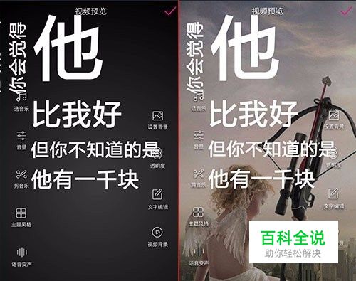 视频预览页面,你可以调整背景音乐,添加背景图,视频也可以用来做背景。如果觉得自己声音不合适的人,还可以给音频变音。