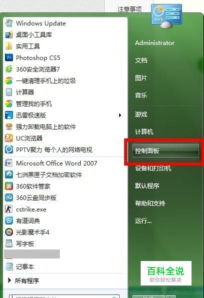 单击“ 开始”菜单,再在开始菜单中找到“ 控制面板”