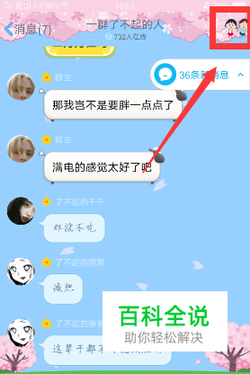 首先进入要修改群名片的QQ群,点击群右上方的图标。