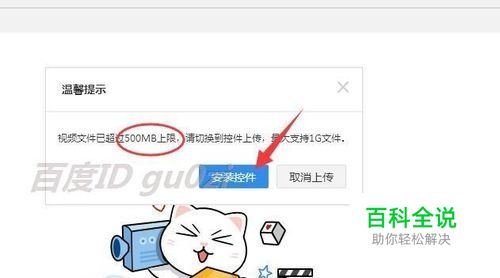 得到一个提示,为了快速上传超过500MB的文件,需要安装控件,并且得到文件大小的限制,最大为1G.