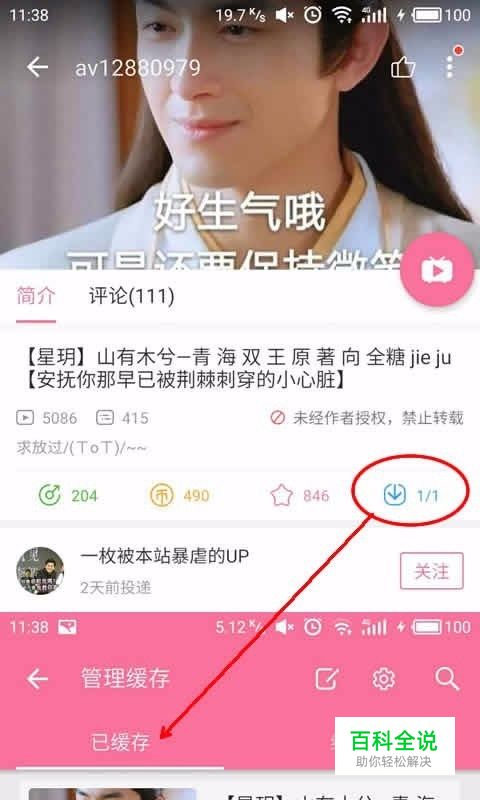 打开视频,点击缓存,在管理缓存中查看“已缓存”