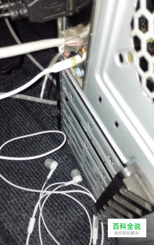 将耳机插到主机后面板耳机插孔中听听是否有声音