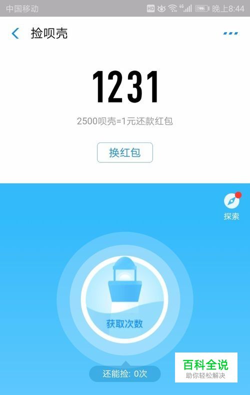 之后,你要获取贝壳,点击进入我的贝壳,之后你可以看到你的贝壳次数,0次就需要获取了,点击探索
