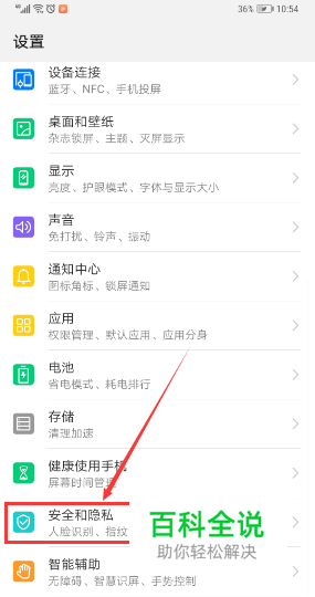 之后再点击【设置】页面的【安全和隐私】这个功能,如图所示。