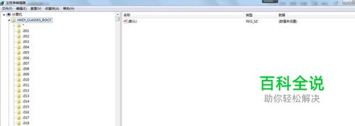 在打开的注册表编辑器的左侧找到HKEY_CLASSES_ROOT,点击前面的三角号展开。