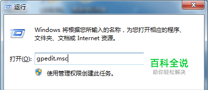 按了组合键以后就可以呼出命令指示框了,然后在里面输入“gpedit.msc”点击“确定”,如下图所示。