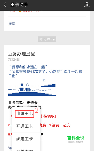 举例说明【王卡助手】公众号内的办理方式: 1、关注【王卡助手】公众号,点击【开通】——【申请王卡】;