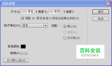 运行Flash CS5软件。新建一个文档,Ctrl+J打开文档设置,在“属性面板”中舞台大小为:1000*600像素,帧频为:30,背景色改为黑色。