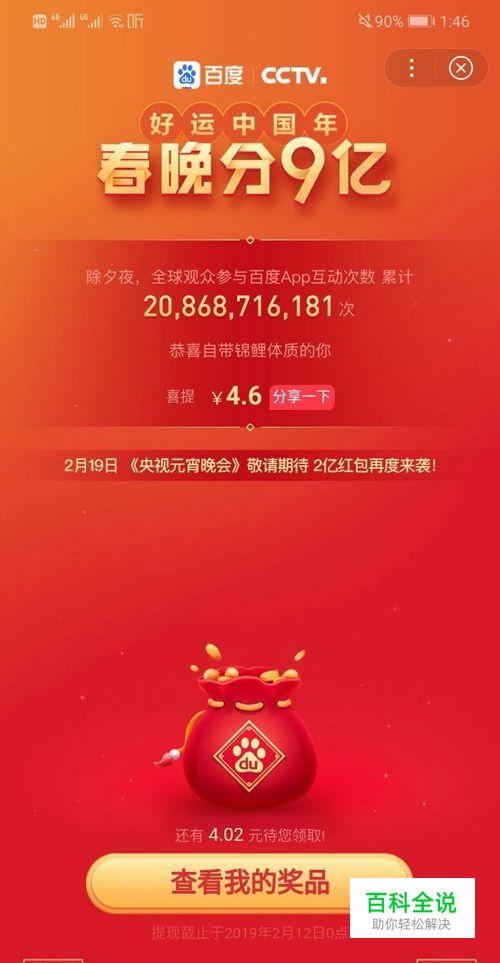 点击“春晚摇红包”,进入春晚分9亿页面。