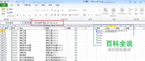 然后右拉复制,并更改每一列所需数据的所在列数。 如下图,班级所在列数相较于学号为第三列,则在VLOOKUP函数中把列值改为3,以此类推。