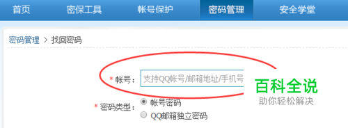 点击之后,进入找回密码页面,输入忘记密码的QQ号