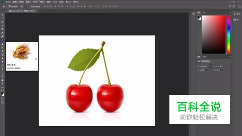 弹出拾色器(前景色)对话框,我们在这里选择红色点击确定然后将鼠标放在绿色的叶子上。按住左键拖动鼠标涂抹叶子,直到将叶子全部涂抹成红色,并成了红色的叶子,这就是替换工具的使用。
