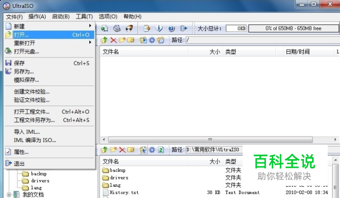 3.下载并安装一个叫“ultraiso”的ISO文件编辑软件,打开ultraiso软件,选择-文件-打开,找到并打开刚下载的WIN7镜像文件。